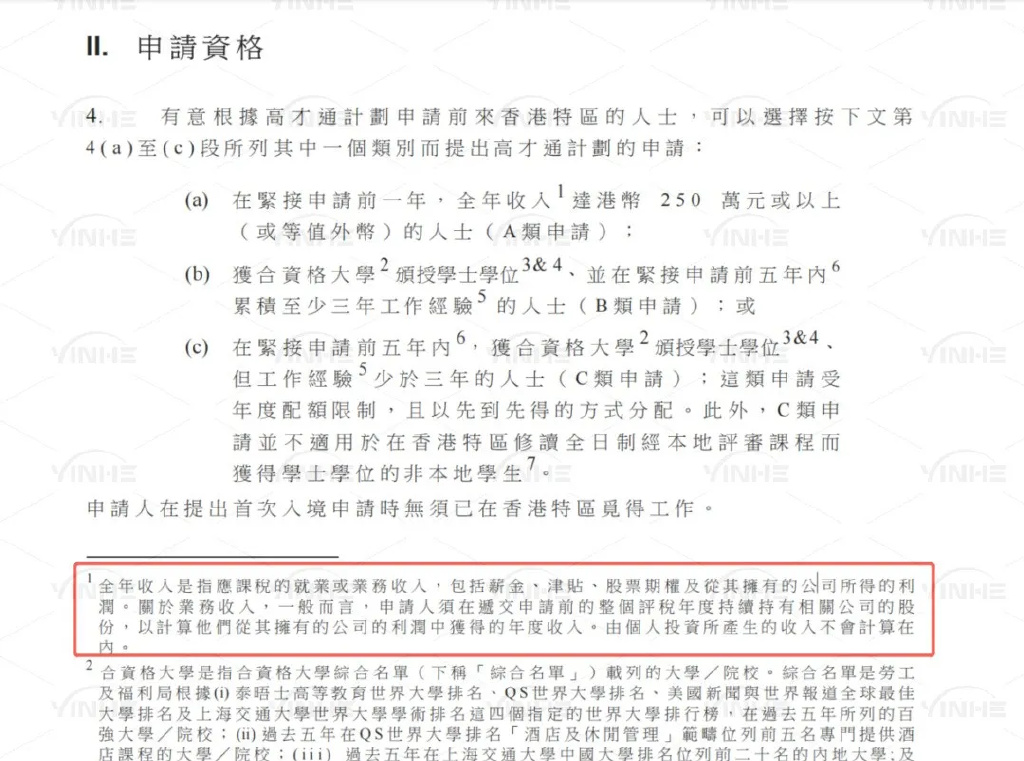 简单来说,香港高才通实际上只针对2类人,年收入超过250w港币(包含公司收入)的高收入人士,以及全球知名院校本科毕业生。符合这2项要求之一,即可以申请获取香港身份。