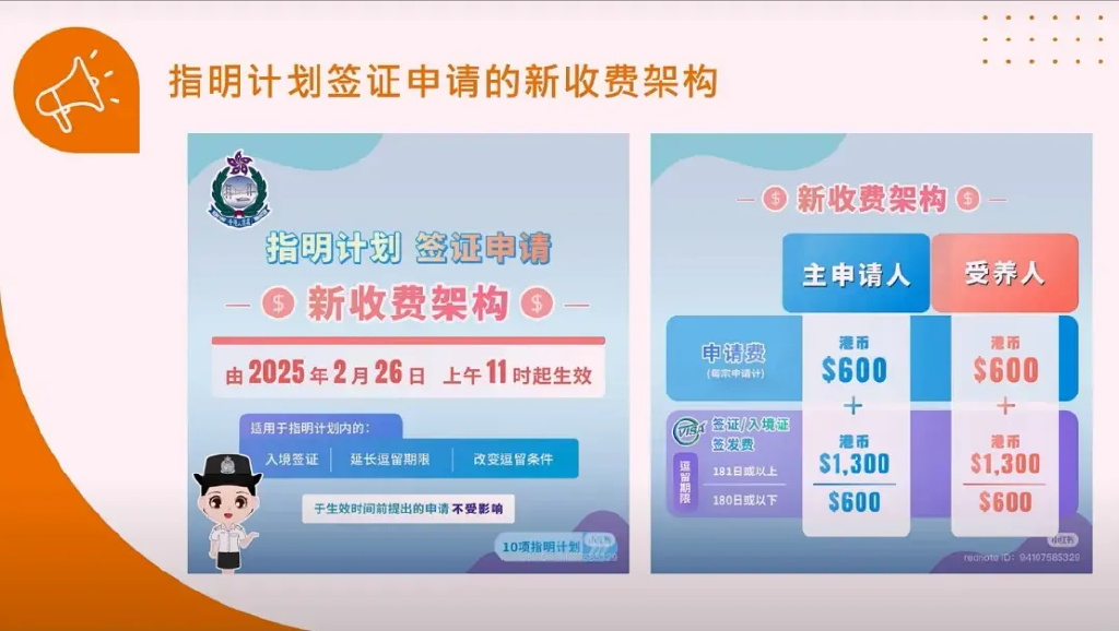 上半年,香港入境处对香港人才签证申请和续签费用上调,申请香港身份/新增受养人/申请延期逗留必须缴纳600港元申请费/人(未通过不退费),获批后的签证签发费由原来的230港元上调至600-1300港元/人。