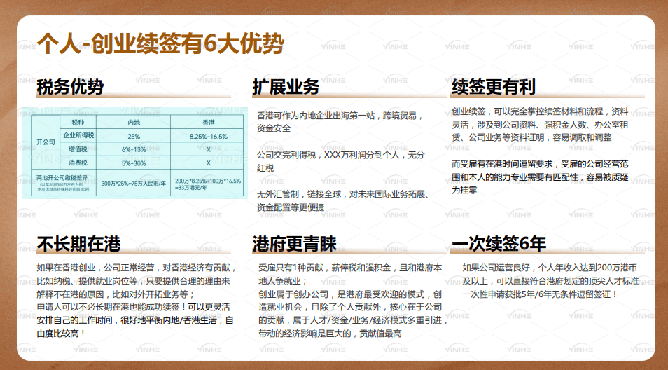 所以,通过创业续签,真实经营不但有机会获得长时间的续签时常,还可以享受税收的优势,拓展自己的业务,不受雇主约束。最重要的是,如果你无法平衡内地和香港的生活,只需提供合理的不在港理由,也能成功续签。