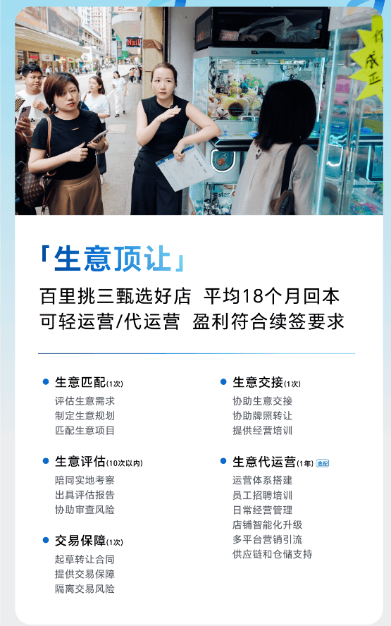 提供汉堡店、奶茶店、洗衣店等民生刚需项目,模式成熟、客流稳定;