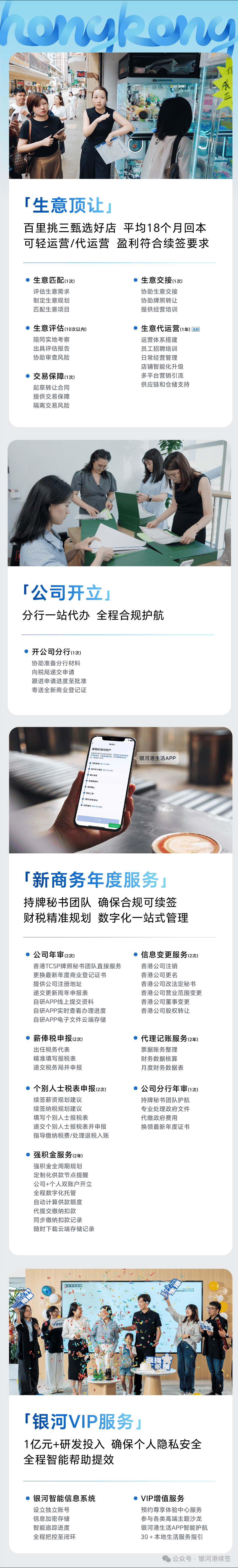 首先,银河集团在香港享有广泛的人脉资源和强大的品牌实力,这为用户提供香港“一站式”创业生意服务奠定了坚实的基础。