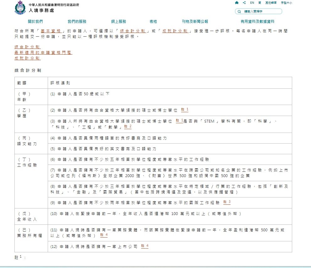 港府主动邀请顶尖优秀人才入境外,绝大部分申请人都要在达到基础申请资格前提下,选择成就计分制或综合计分