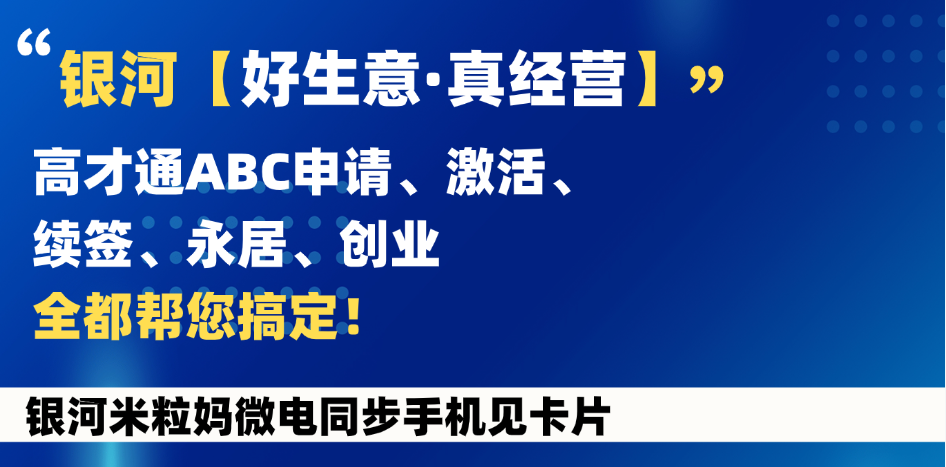 高才续签咨询、申请、规划、办理都可以找银河米粒妈,银河集团提供高才创业自雇续签单项和全套服务。银河米粒妈微电同步(手机见卡片)