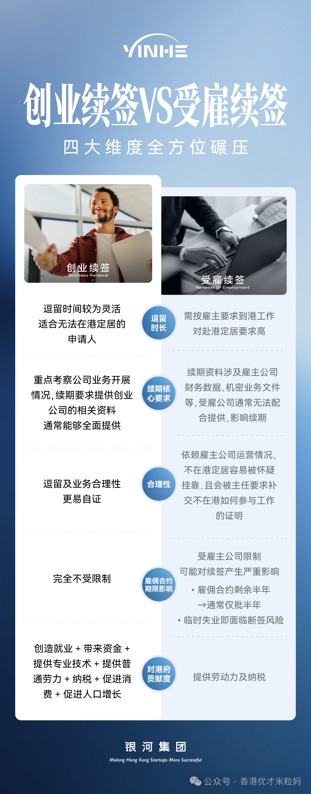 需要提醒各位朋友的是,高才续签无论是就业续签还是创业自雇续签,都需要尽早规划。 香港入境处多次强调,临近续签节点才建立与香港的工作联系,最初2~3年可能不计入香港永居时间。 除此之外,高才续签入境处还会看合约时间和公司注册时间。如果太短,只会给批一个短期逗留,本来可以拿3年,结果只拿1年。
