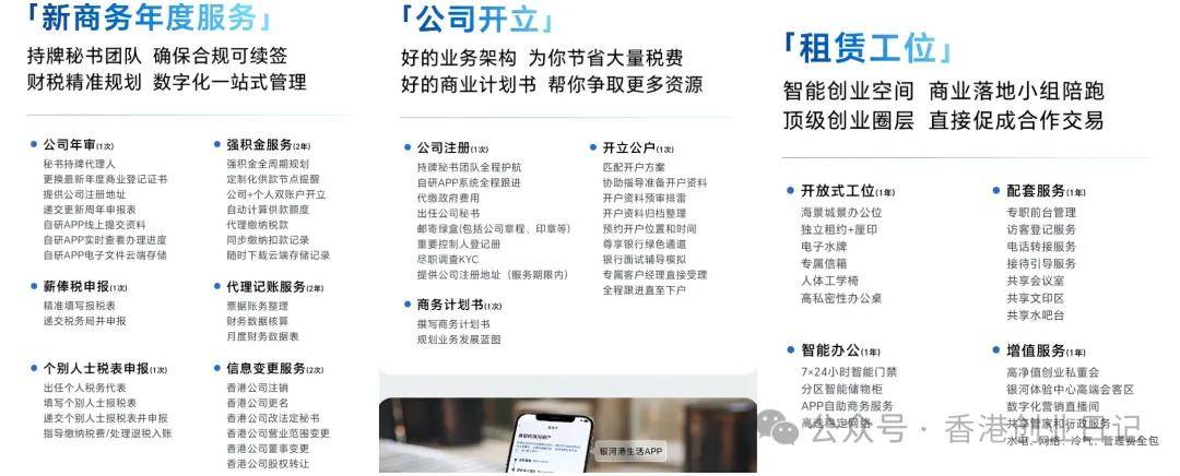 银河集团真经营产品提供香港公司开立、工位租赁、年度商务服务、身份续签永居一站式服务,香港商业落地小组全程陪跑,欢迎咨询(17319271820):
