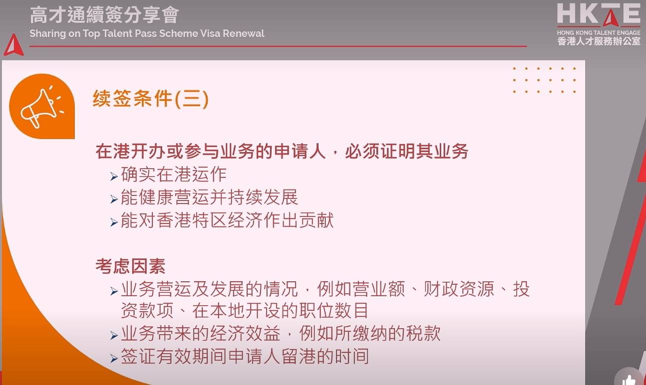根据香港入境处最新高才续签条件,在香港开办或参与业务的申请人,必须证明其业务: